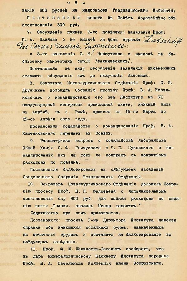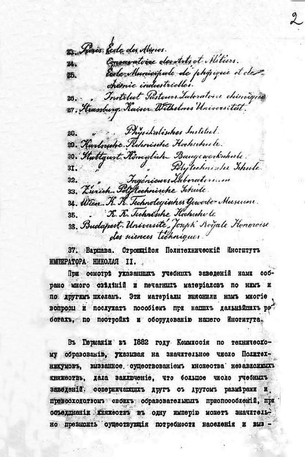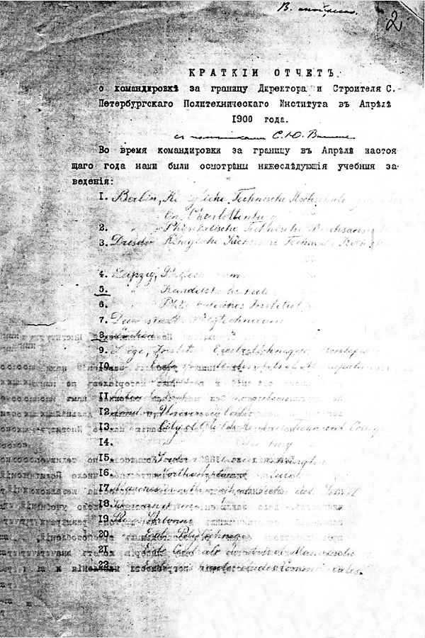 2 марта 1900 г. Министерство финансов принимает решение о командировании А.Г. Гагарина и Э.Ф. Вирриха в Европу для осмотра высших учебных заведений и изучения, дальнейшего использования европейского опыта устройства высших учебных заведений. За апрель месяц были осмотрены 37 вузов в Англии, Австрии, Бельгии, Венгрии, Германии, Франции, Швейцарии. Особого внимания заслуживает отчет князя Гагарина о командировке.