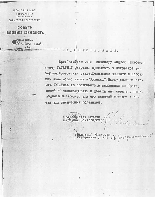 В том же году в бывшем имении Строгановых и Васильчиковых Волышево, в нескольких верстах от Холомков, был открыт сельскохозяйственный техникум. С октября 1920 г. А.Г. Гагарин читал в нем лекции по математике и физике. 22 декабря 1920 первый директор Санкт-Петербургского Политехнического, князь Андрей Григорьевич Гагарин умер в день своего 65-летия.