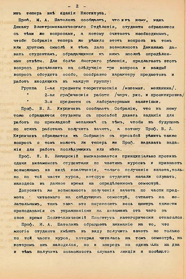 Директору политехнического вуза начали поступать предложения, советы, рекомендации по составу и численности студенческих групп: сословие, вероисповедание, образование … Предлагали отбирать кандидатов только из дворян, семей военных и т.д. Чуть позже, уже после открытия на имя директора направляли письма родители студентов: «Андрей Григорьевич, голубчик, мой сын такой домашний, вы уж присмотрите за ним, пожалуйста». Во многом, благодаря именно Андрею Григорьевичу, в Политехническом «Создалась небывалая община, где студенты и профессора общались не только на лекциях и в лабораториях, но где профессора принимали студентов у себя на дому, знали способности и склонности каждого студента и где происходила наибольшая диффузия знаний между техниками и экономистами» - вспоминал студент-политехник, выпускник электромеханического отделения Е.А. Вечорин
