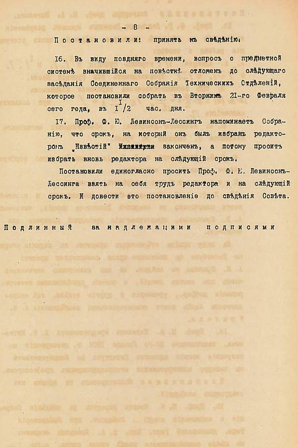 С.Ю. Витте смог убедить государственный аппарат в необходимости создания вуза с целью подготовки грамотных, квалифицированных специалистов в «новых» профессиях для решения технических и экономических задач, стоящих перед государством в конце XIX - начале XX вв. 19 февраля 1899 г. было получено «Высочайшее соизволение» императора Николая II на строительство Санкт-Петербургского политехнического. 22 февраля была совершена покупка земельного участка, а 23 числа этого же месяца сформирована «Особая комиссия» по строительству архитектурного ансамбля. Члены Особой Строительной Комиссии вели журнал заседаний.