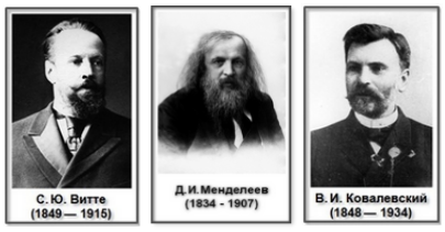С.Ю. Витте, Д.И. Менделеев и В.И. Ковалевский.