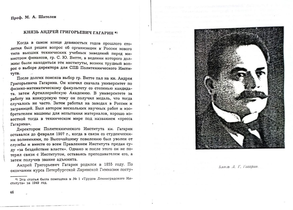 Эти слова о князе А.Г. Гагарине были сказаны уже после его смерти друзьями, коллегами и студентами.