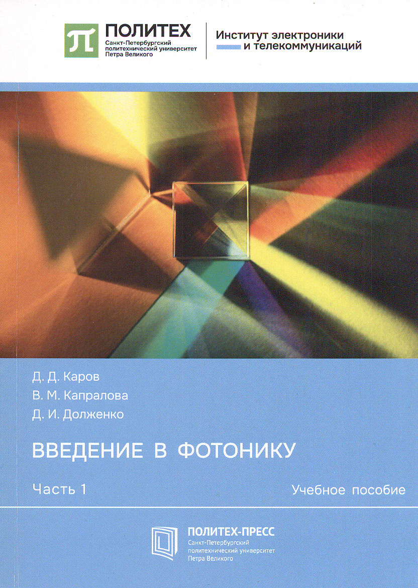This training manual covers the fundamentals of modern photonics, an interdisciplinary science encompassing such fields as fiber and integrated optics, laser physics, nonlinear optics, and biophotonics. The manual provides basic information on the electromagnetic theory of optical radiation, considers the propagation of light in isotropic and anisotropic media, phenomena at the interface between media, in particular, total internal reflection. Basic information on the interference and diffraction of light is given, including diffraction at apertures of various shapes. Considerable attention is paid to the physical fundamentals of light propagation in dielectric films, in planar and fiber structures. The authors consider dispersion properties and optical losses in optical fibers, fundamentals of Bragg and corrugated waveguide optics. The manual corresponds to the content of the discipline “Fundamentals of photonics” and is intended for students of higher educational institutions studying for a Bachelor’s degree in the major “Electronics and nanoelectronics”